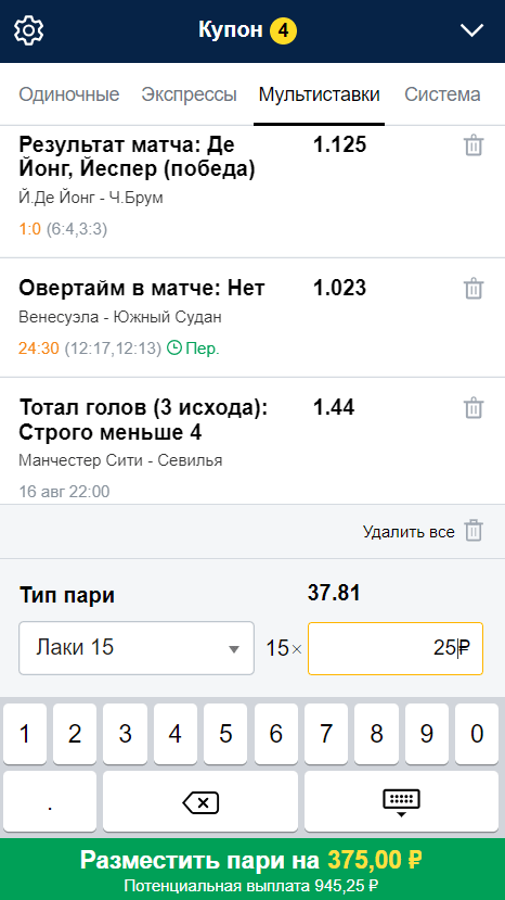 №3 – на странице матча кликнуть по коэффициенту исхода. Например, ничья.