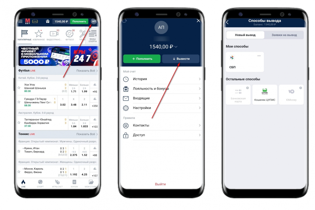 Как вывести выигрыш через мобильное приложение Marathonbet